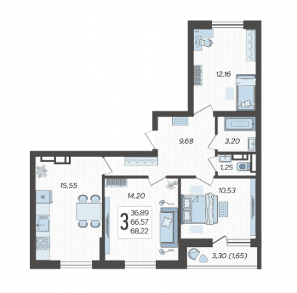 Продается 3-х комн. новостройка, 68.22 кв.м., 2/18 эт