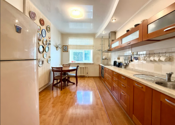 Продается просторная квартира с добротным наследием. Общая площадь 82.5 кв.м. Две комнаты – угловая с балконом (прежде была спальней и кабинетом) и центральная с двухстворчатыми распашными дверьми и широким деревянным подоконником с местом под хранение (прежде была залом-спальней). Санузел совместный (перепланировка- объединение санузла узаконена) с чугунной французской ванной, также есть биде. Кухня выполнена из дуба. В коридоре большой шкаф-купе (прежде это была гардеробная зона), в прихожей зоне есть комната-кладовка (можно также использовать под гардероб или хранение). Пол везде – ламинат, на кухне в рабочей зоне – кафель под дерево, в ванне – кафель. Окна кухни и центральной комнаты выходят во двор дома, там солнечно днем и на закате. Из окон угловой комнаты видно водоканал и вечнозеленый холм перед ним и рассвет. Дома всегда светло и тепло. Квартира находится под охраной Отдела вневедомственной охраны ОВД Сыктывкара. Входная дверь усиленная, Гардиан. Счетчики на ГВС, ХВС действующие , опломбированные. Есть счетчик тепла. Домом управляют собственники квартир путём собраний и коллегиальных решений в общем чате дома. Дворовая территория МКД находится в совместной собственности жильцов дома и на 2026 год вошла в муниципальную программу по реконструкции дворовой территории – двор будет расширен, установлен новый бордюрный камень, асфальт, обустройство парковочных мест; планируется установка заездов шлагбаумом. МКД оснащен электронной системой отопления - температура горячей воды, в том числе отопления регулируется в зависимости от температуры на улице. Подъезды и лифты ухожены. Вход в подъезд по домофону. В шаговой доступности от дома школа №1, театр оперы и балета Республики Коми, магазины, детские сады, ателье, спортивный клуб. Очень дружные соседи по подъезду и дому. Мебель и техника остаются по договоренности, подробнее по телефону