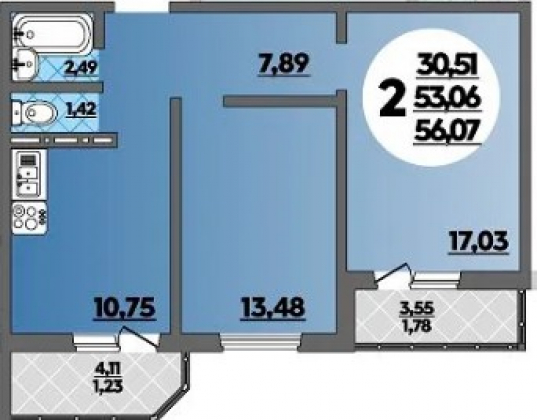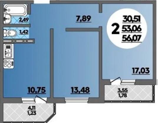 Продается 2-х комн. новостройка, 56.07 кв.м., 6/16 эт