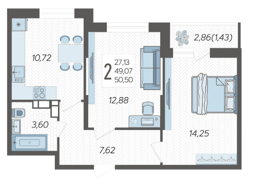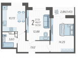 Продается 2-х комн. новостройка, 50.5 кв.м., 2/16 эт
