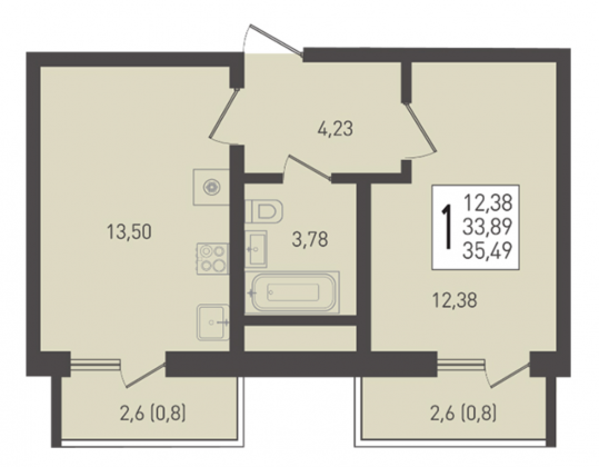 Продается однокомнатная новостройка, 33.57 кв.м., 10/21 эт