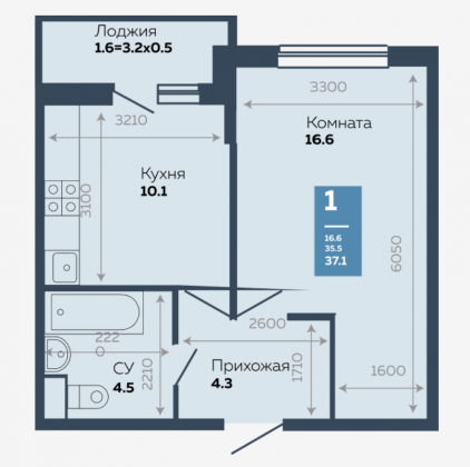 Продается однокомнатная новостройка, 36.6 кв.м., 14/21 эт