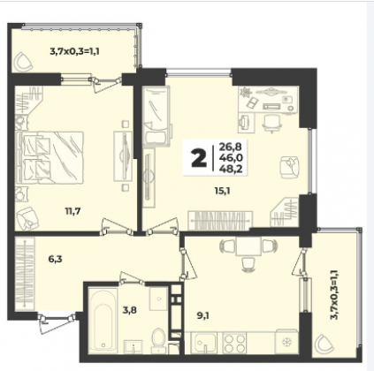 | Жилая площадь | 26.8 |