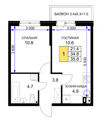 В избранное однокомнатная квартира в ЖК Ракурс