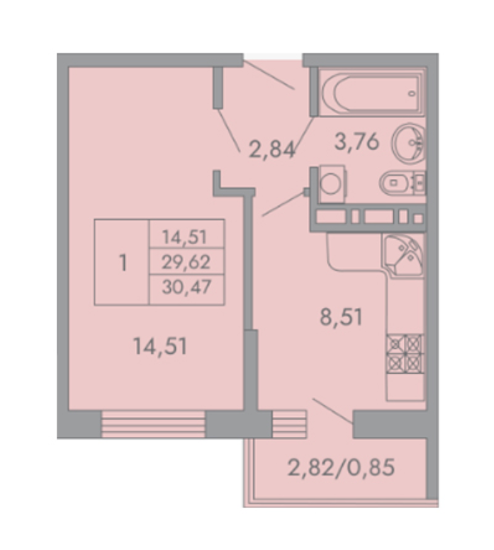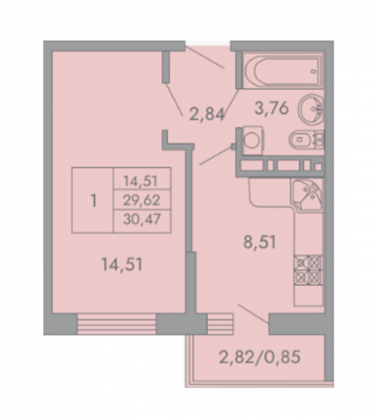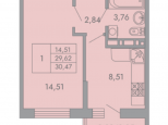 Продается однокомнатная новостройка, 30.5 кв.м., 3/9 эт