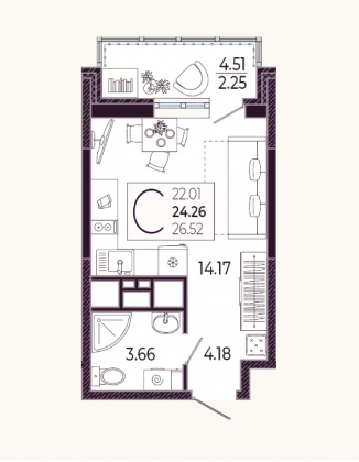 Продается Студия новостройка, 24.6 кв.м., 4/21 эт