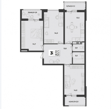| Жилая площадь | 42.7 |